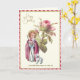 Con una preciosa tarjeta de cumpleaños adecuada para un niño o chica con una hermosa imagen religiosa vintage del niño Jesús sujetando corderos con rosas rosas rosas rosas rosas.