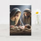 María, José y el bebé Jesús en la tarjeta de Navidades religiosos del pesebre. Dentro de la tarjeta está el verso de la Biblia "Y había pastores en el campo, vigilando de noche. Y les apareció un ángel del Señor, y la gloria del Señor brilló a su alrededor.