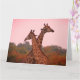 Tarjeta jirafas con cielo rosa