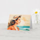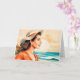 Tarjeta Joven mujer disfrutando del sol en la costa