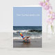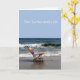 Olas oceánicas y tarjeta de bienvenida de retiro para silla de playa