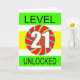Tarjeta de 21 cumpleaños para un videojugador. A cualquier jugador de computadora le encantará esta tarjeta. Con el lema Nivel 21 Desbloqueado, esto seguramente recibirá una gran sonrisa de cualquiera que ame jugar a juegos de computadora.
