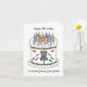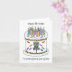 Un simple ilustracion de un pastel de cumpleaños blanco decorado con imágenes de un objetivo de golf en disco y discos, a ambos lados, y encendió velas en la parte superior. La imagen está puesta sobre un fondo blanco y acompañada de las palabras 'Feliz cumpleaños a un disco de golf muy especial'.