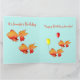 ¿Estás buscando una tarjeta de cumpleaños para un niño? Quizás todo esto alrededor de la tarjeta de cumpleaños diseñada es la que te gusta comprar. Los diseños son ilustraciones vectoriales dibujados digitalmente y muestran a los peces de colores apresurados para desear a los niños de cumpleaños un feliz cumpleaños. El texto de la parte delantera y el texto interior son objetos de plantilla y se pueden cambiar fácilmente en cualquier otro texto. También es posible añadir más texto o eliminar texto. Incluso puede cambiar el tamaño del texto, el color del texto o elegir un tipo de letra diferente. También es posible cambiar los colores de fondo interiores y/o eliminar la imagen interior derecha.