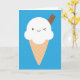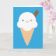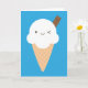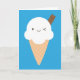 Un clásico cono de helado de vainilla 99 británico con copos de chocolate, estilo kawaii, con un fondo azul brillante. La deliciosa comida dulce de verano.