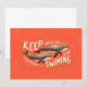 Charming vintage-style illustration featuring two whales swimming together with the uplifting phrase “Keep Swimming.” The warm coral background, textured artwork, and hand-drawn marine life design create a playful yet inspirational ocean-themed piece.