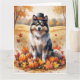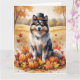 Tarjeta Keeshond En El Otoño Deja El Arte De Acción De Gra