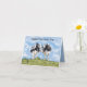 This charming editable Valentine’s Day card features my painting of two black and white cows “kissing” They are in the countryside against a lovely blue sky. The text can be changed for your own message inside.