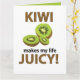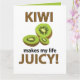 Tarjeta Kiwi para amantes de la fruta, diseñada por Nisha Prabhu. Admire el sabor dulce y agrio del kiwi con esta adorable tarjeta Kiwi Fruit Lover Kiwi! Perfecto para mandar un mensaje divertido y cordial a sus seres queridos. Consigue el tuyo hoy y agrega un toque de frescura a tu colección de tarjetas!