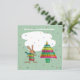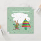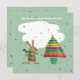 kerstkaart met afbeelding van kleurige kerstboom en konijn met kersttrui in dezelfde kleuren. tekst: fijne kerst en een gelukkig nieuwjaar.