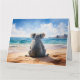 FRENTE: Koala sentado en una playa de arena con el texto "Feliz Navidad" DENTRO: "Feliz Navidad y Feliz Año Nuevo" saludando de vuelta: Koala sentada en una playa de arena frente al océano con gaviotas volando a la distancia. Este furtivo koala es un nativo de Australia, son fácilmente reconocibles por su cuerpo sin sastre y su gran cabeza con la cabeza redonda, temores fluidos y una nariz grande con forma de cuchara cuchara.