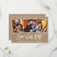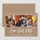 Tarjeta Kraft de anuncio de compromiso para guardar nuestra fecha con pareja de madera rústica de Brush Script moderna 3 fotos