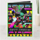 Celebra el espíritu alegre de Kwanzaa con esta vibrante y festiva tarjeta de saludo. Con sus coloridas y luminosas siluetas y bailes en armonía, este diseño capta la esencia del patrimonio afroamericano y las inspiradoras tradiciones de Kwanzaa. Perfecto para difundir alegría y celebrar unidad, autodeterminación y comunidad durante la temporada de fiestas.