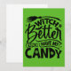 Este diseño con tema de Halloween presenta la frase juguetona "Witch Better Have My Candy" dispuesta en una dinámica composición de fuentes mixtas. La palabra "Witch" se muestra en letras negritas y bloqueadas, mientras que "Better" está escrita en una escritura cursiva y fluida, lo que añade un sentido de urgencia y diversión al diseño. La frase "Have My" está encerrada dentro de una pancarta, lo que enfatiza aún más la demanda. La palabra "Candy" destaca en la parte inferior en letras grandes y bloqueadas, con pequeñas ilustraciones de calaveras integradas en el diseño. Elementos adicionales de Halloween, como una escoba de bruja, un murciélago, una estrella y caramelos envueltos, están dispersos por toda la composición, lo que realza el ambiente espeluznante y festivo.