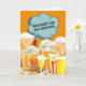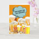 Un divertido y humorístico diseño gráfico con tazas de cerveza con top espumoso descansando sobre pretzels y quesos amarillos ambientados con un color de fondo de su elección. El exterior dice que la cerveza no hace preguntas tontas y el interior, ¡entiende! Esta tarjeta es perfecta para cualquier celebración especial que los chicos quieran celebrar con los hombres - jubilación; despedida; felicitaciones; graduación; nuevo papá; nuevo trabajo; nuevo negocio.