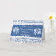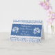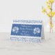 Una tarjeta muy bonito "Get Well Soon" para alguien que está en cirugía de cadera. El texto es blanco sobre el azul índigo y la carta está decorada con una estampada floral en azul sobre blanco, un falso borde de encaje y motivos florales de encaje blanco, de un diseño dibujado a mano por Judy Adamson.