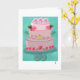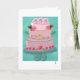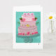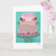 Grandioso y ornamentado, esta pieza presenta un pastel de tres pisos que se eleva contra un rico fondo de color teal. El contraste entre el fondo profundo y las rosas rosadas exuberantes y realistas crea una profundidad visual impresionante.