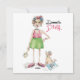 Diva doméstica se vistió para limpiar el baño Diva doméstica: En mi dibujo, nuestra Diva doméstica está vestida con una falda corta verde, la tapa rosada de manga baja en el cuello, los anillos de oído, el collar, llevando zapatillas con el pelo en rodillos; tomándose un descanso de ver telenovelas pronto usará su cepillo de retrete para hacer la necesaria limpieza en la casa. Ella es observada de cerca por su pequeño y atento caniche. Disfruté esbozando mi Diva ya que ilustra los diferentes roles, realidades y sueños que las mujeres experimentan. Creo que a nuestra Diva le está yendo bien y espero que ella les dé una sonrisa a ustedes y a sus amigos cuando ocasionalmente se llevaran a mi sketch sobre estas cartas. Gracias por visitar mi tienda, Pam Elifritz Lseven