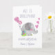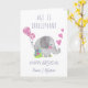Tarjeta de cumpleaños divertida, titulada "La edad es irrelevante". El diseño presenta un capricho ilustracion de un lindo elefante con globos de cumpleaños, corazones de amor y flores. Puede personalizar la tarjeta para cualquiera que desee en la parte delantera y también puede escribir su propio mensaje dentro.