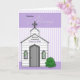 Bendiciones cristianas para la esposa del Pastor en su cumpleaños. Un pequeño y dulce ilustracion de iglesia se sienta contra un fondo de lavanda morada y una escritura interna de los números 6:24-26.
