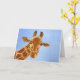 Esta encantadora pintura al óleo de una simpática jirafa africana de Sharon Carter realmente te lleva la vista. Mirando de forma clara hacia ti, hace contacto visual, seguiéndote en cualquier dirección desde la que lo veas. Esta tarjeta puede ser personalizada con su propio mensaje en el interior para que se adapte a cualquier ocasión.