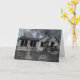El fantasma de una mujer vestida al final de Victoria hace una pausa afuera de una casa en ruinas, entre dos esqueletos. ¡Muy espeluznante y perfecto para la fantasía de Halloween!