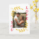 Esta tarjeta de San Valentín presenta una corona dorada con una foto y una tipografía roja "Te amo" con un fondo blanco. Puede personalizar fácilmente el texto dentro de la tarjeta o simplemente eliminarlo.