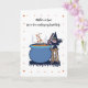 Esta tarjeta de humor hará sonreír a su suegra mientras le desea Feliz Halloween. Muchas burbujas naranjas vienen de la gran olla de la pequeña bruja.