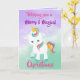 Desee a sus amados Navidad Felices y mágicos. Esta tarjeta de Navidad temática del unicornio ofrece un fondo púrpura y azul precioso con "desearle Navidad Felices y mágicos" con un unicornio en el centro. El interior de la tarjeta tiene un mensaje hermoso. ¡Ponga su orden hoy!