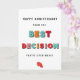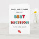 Tarjeta La mejor decisión divertida en tu aniversario de v