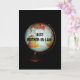 Un globo antiguo colorido, fotografiado contra un fondo negro, es el tema de mi "feliz cumpleaños a la mejor suegra en la tierra!" tarjeta de cumpleaños. La "mejor suegra", en texto negro en la cara del globo, termina la imagen delantera de la tarjeta.