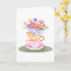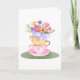 Tarjeta La pila de taza de té en pasteles con flores se po
