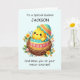 ¡Haz que la primera Pascua de tu ahijado sea aún más especial con un toque personalizado! Una niña de renombre se eclipsa de su huevo, simbolizando la belleza de los nuevos comienzos, mientras florecen flores de colores a su alrededor. Su nombre en la parte delantera hace de esta carta un keepsake único y atesorado, con un suave fondo verde azulado pastel. ¡Una hermosa manera de celebrar este hito y compartir la alegría de Pascua con amor y fe!