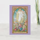 Deséenle a su familia y amigos "Bendiciones de Pascua" con esta encantadora representación de la Resurrección enmarcada con una frontera violeta. Esta imagen tradicional, realizada en vivos colores primaverales, se inspiró en los prototipos góticos medievales. Representa a Cristo en el mismo momento en que se levanta de la tumba. + Debido a que las tumbas cortadas en el acantilado no eran comunes en Europa Occidental, la tumba de Cristo aquí es una caja rectangular de piedra sobre el suelo a la manera del sarcófago romano. Su tapa, una vez sacada por un ángel que no aparece en la foto, yace en una diagonal al otro lado de la abertura detrás de Jesús. La tumba está rodeada por media docena de soldados romanos. La mayoría de los soldados siguen durmiendo, pero uno o dos empiezan a reaccionar con asombro ante la escena que se despliega sobre ellos. Ataviado de un prístino desagüe blanco, Jesús se cierne sobre ellos con los pies desnudos que aún no están completamente libres de la tumba. Está enmarcado por una mandorla, una radio en forma de almendra bordeada de estilizados rayos solares. Lleva un cartel de "Resurrección" en la mano izquierda. La pancarta está suspendida de una cruz alta y delgada y lleva una cruz -más rosa en color que el rojo habitual- en un campo blanco. La pancarta representa la victoria de Cristo sobre la muerte. Su mano derecha mira hacia afuera la palma del espectador. El gesto es de saludo o triunfo en lugar de bendición (cf. nuestro VVP 08). La herida que dejó el clavo con el que se ató la mano a la cruz es claramente visible, como lo es la herida en su costado donde le perforaron con una lanza. + Debajo de la escena hay una cita de Scripture. Dice: "Surrexit... sicut dixit", es decir, "Se ha levantado... incluso como dijo" (Mateo 28:6 - ASV [versión estándar estadounidense]) + También disponible con un borde rosa, azul acuático, verde o amarillo. + Crédito de la imagen (SAU 041): Imagen antigua en cromolitografía titulada Surrexit... sicut dixit [Se levanta... incluso como dijo] publicada originalmente por la Socièté de St. Augustin, Brujas, Bélgica, a finales del siglo XIX, de la colección privada de ephemera religiosa del diseñador. Cita (Mateo 28:6): ASV (versión estándar estadounidense), de dominio público.