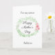 Un laurel de color verde agua y flores rosas bonito la tarjeta de sobrina Feliz Día de la Madre, que podrás personalizar fácilmente el frente con su nombre. El mensaje interno de esta tarjeta de Día de la Madre de sobrina de bonito lee un mensaje sincero, que también puede personalizar si lo desea. En la parte trasera hay el mismo laurel de color verde agua con flores rosadas que permite poner los nombres del niño o de los niños o lo que sea que te guste. Un dulce conservador del Día de la Madre que es personalizado y seguro que será valorado.