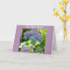Hydrangea púrpura hermoso del cordón con un verso de la biblia en el interior.