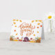Esta alegre tarjeta de felicitación del día de Acción de Gracias cuenta con un magnífico pavo rodeado de vibrantes hojas de otoño y frutas de temporada. El atrevido texto del naranja "Feliz Día de Acción de Gracias" agrega un toque juguetón al diseño, haciendo que sea una manera divertida y festiva de enviar sus saludos de vacaciones. El ilustracion colorido capta la alegría de la temporada, haciendo de esta tarjeta de saludo un placer para sus seres queridos.