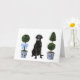 Estas tarjetas de felicitación tienen un retrato acuarela de un laboratorio negro sentado entre dos topiarios de estilo chinoiserie.