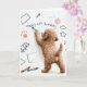 Un cachorro de Labradoodle ondulado está dibujando alegremente en una pared cubierta de doodles y formas usando un cañón para cumplir 85 años. Se puede cambiar el texto interior.