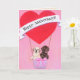 Arte de Labrador Retriever de aniversario de bodas lindo y caprichoso pintado por Naomi Ochiai de Japón. Una adorable pareja de Labrador amarillo y Labrador de chocolate sentados en un globo aerostático en forma de corazón. Puedes personalizar el texto como desees. Elimina el texto de ejemplo e inserta el tuyo.