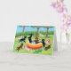 Tarjeta de Verano Divertido de Labradores para fans de Labrador! Gracioso Pintado de Labrador Recuperador y Pintura divertida de verano. El Labrador Negro y el Labrador Chocolate y el Labrador Amarillo están pintados en la imagen. Perros felices y lindos de Labrador Retriever juegan en el jardín con piscina infantil y agua. Colorida y alegre escena de verano con los Labs. Pintado por Naomi Ochiai de Japón.