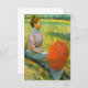 Este diseño presenta un cuadro del pintor impresionista italiano Federico Zandomeneghi (1841-1917). Muestra a una elegante joven descansando en un hermoso campo verde de hierba. Lleva una blusa rosa y una larga falda verde; en sus manos usa guantes de seda blancos y tiene una sombrilla roja en el regazo. Su cabello está atado cuidadosamente en un bollo, y ella está mirando a la distancia. Es una escena tranquila y relajada, que muestra la belleza de una era perdida.
