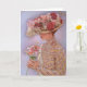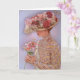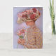 La luz del sol brilla sobre esta dama victoriana elegantemente vestida, en un hermoso gorra grande cubierto de flores, mientras sostiene un lirio. Reproducida a partir de la pintura original de Sue Halstenberg.