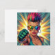 Mujer de estilo libro de historietas de arte pop con poco corte que da un punzón de pow de corte superior punch arco iris lgbtqia + gafas de sol notecard en blanco.