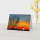 Un magnífico atardecer azul, naranja y dorado en el lago, fotografiado a través de árboles sin hojas, es el tema de mi tarjeta "Pensando en ti". Capté esta escena a lo largo de la costa del hermoso lago Winnebago en Quinney, Wisconsin.