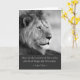 Tarjeta de saludo con fotos en blanco y negro de un león macho con una famosa cita de Lao Tsé: Quédate en el centro del círculo y deja que todas las cosas sigan su curso. Uso sugerido: pensar en ti, ánimo.