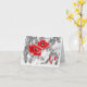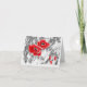 Tarjeta Lápiz esquematizado a mano adornos rojos flores fl