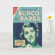 El arte de la portada del cómic humorístico y campy de Las Aventuras de las Chicas Bunco está diseñado por Artinspired. Perfecto para una tarjeta de cumpleaños, una nota para decir hola o como invitación a Bunco. El diseño presenta a una mujer jugando Bunco pensando en ganar un premio por tener más Buncos. Busca este diseño en otros productos, así como otros diseños inspirados en Bunco en www.zazzle.com/artinspired*