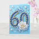 Celebrar un hito en el cumpleaños 60 con esta impresionante tarjeta. El número 60 brilla con gemas de zafiro azul profundo, cada una enmarcada en un marco dorado. Las perlas blancas, como las gotas de agua luminosas, están repartidas por todo el diseño. Una bella rosa blanca florece abajo, un símbolo eterno de nuevos comienzos. Personalizable total para añadir un mensaje personal.