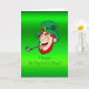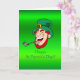 ¡Perfecto para el Día de San Patricio! Un leprechaun riéndose con barba de jengibre, pipa de arcilla y shamrock en su banda de natación. El verso interior dice: Un feliz día de San Patricio para ti, y para toda la gente que aprecias. Que la suerte de shamrock sea recta y verdadera Y sonríe en ti por otro año
